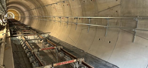 Widać również postępy przy betonowaniu nawierzchni torowej – obecnie takie prace odbywają się w tunelu łączącym stacje Karolin i Chrzanów. Budowa takiego torowiska w tunelach metra to skomplikowany proces. Tunel po wydrążeniu ma przekrój koła. Dlatego najpierw należy wybetonować płaskie powierzchnie, tzw. bankiet dolny („podłogę” tunelu) oraz boczny, który będzie pełnił funkcję korytarza technologicznego.