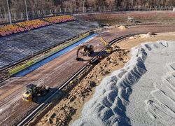 Trwa wymiana murawy na syntetyczną dla całorocznego użytkowania, montaż oświetlenia, bramek, wiat oraz oznakowania; planowana korekta toru żużlowego i nowe bandy. Prace ruszyły jesienią 2025 r., wpisując się w szerszy masterplan rozwoju.
