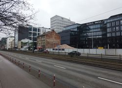 Budynek mieszkalny, apartamentowy z garażem podziemnym. 10 pięter, 146 mieszkań oraz lokale handlowe i usługowe. Kraków. ulica Mogilska 31