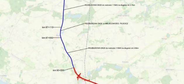Decyzja środowiskowa dla DW 241 wydana w listopadzie 2024 r.; projekt DK 25 gotowy w lutym 2026 r., budowa obu odcinków od października 2026 r., zakończenie w 2029 r.