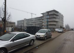 Budowa budynku mieszkalnego sześciokondygnacyjnego z garażem podziemnym, w którym zaprojektowano 165 mieszkań o metrażu od 30 m2 do 69 m2, 1,2,3 i 4 pokojowych wraz z szkołą z salą widowiskową oraz przedszkolem.