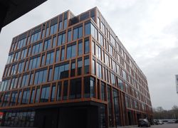 Budynek biurowy klasy A. Sześć kondygnacji, taras widokowy, 7625 m2 powierzchni, 140 miejsc w garażu podziemnym, Wysokość budynku 22,50 m, 80 m2 tarasu widokowego.