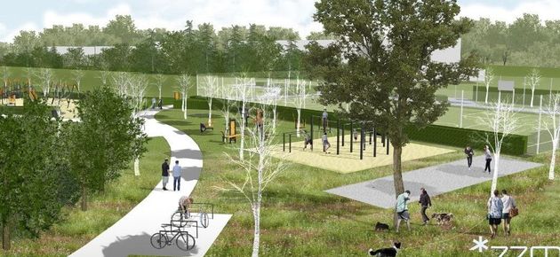 Dla dzieci powstaje nowoczesny plac zabaw wyposażony m.in. w trampolinę, huśtawki, karuzelę integracyjną, liczydło edukacyjne oraz linowy stożek obrotowy. Wzdłuż terenu wytyczone zostały alejki spacerowe z nawierzchni mineralnej przepuszczającej wodę opadową oraz z kostki brukowej, które uzupełniają ławki z oparciami i podłokietnikami, szczególnie przyjazne osobom starszym. Przestrzeń będzie też bogato zadrzewiona - planowane jest posadzenie około 50 drzew i niemal tysiąca krzewów, w tym klonów, ambrowców, grusz drobnoowocowych, forsycji i ligustrów.