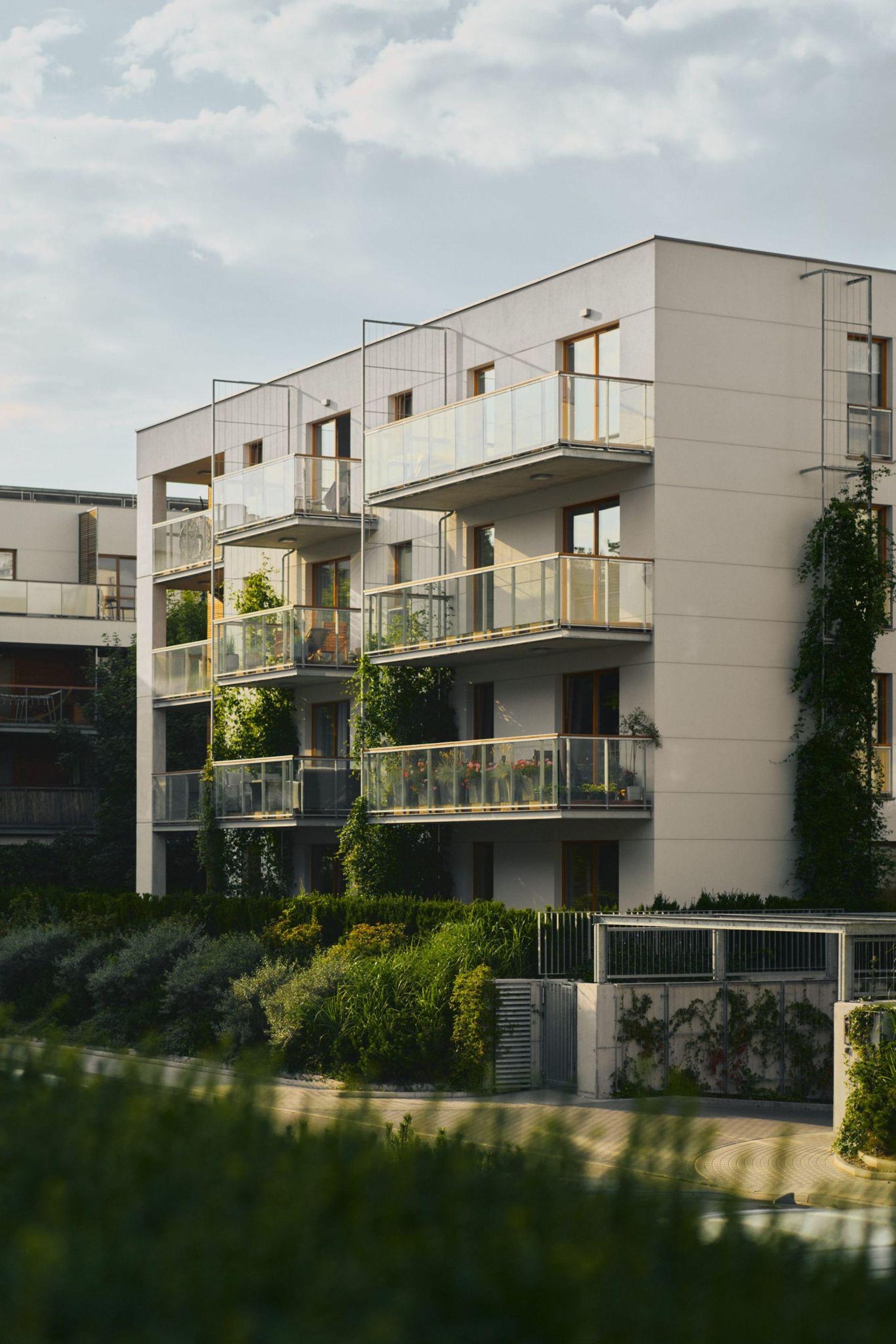 Niemal połowa obszaru inwestycji to tereny zielone, które przenikają się z Parkiem Reagana oraz sosnowym lasem. Projekt został zaprojektowany jako osiedle-ogród, co oznacza, że niska zabudowa nie dominuje nad przyrodą. Jasne elewacje oraz ciepłe drewno okien, balkonów i elementów małej architektury harmonijnie łączą się z wszechobecną zielenią. Klasa projektu podkreślona jest starannym doborem materiałów, takich jak surowa stal balustrad, uszlachetniony beton czy liczne przeszklenia. Do każdego mieszkania przynależy ogródek, balkon lub taras, co pozwala na swobodne korzystanie z przestrzeni.