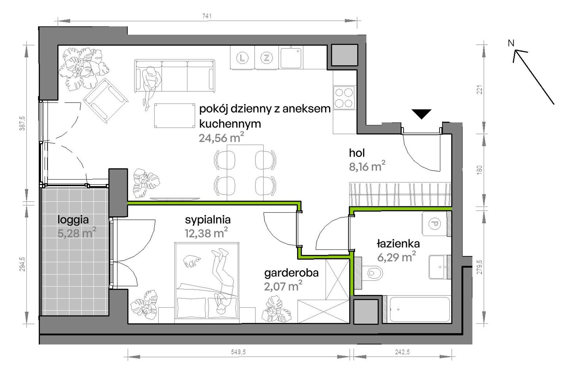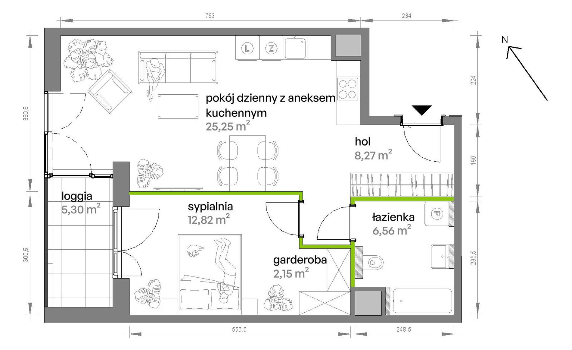 55,05 m2