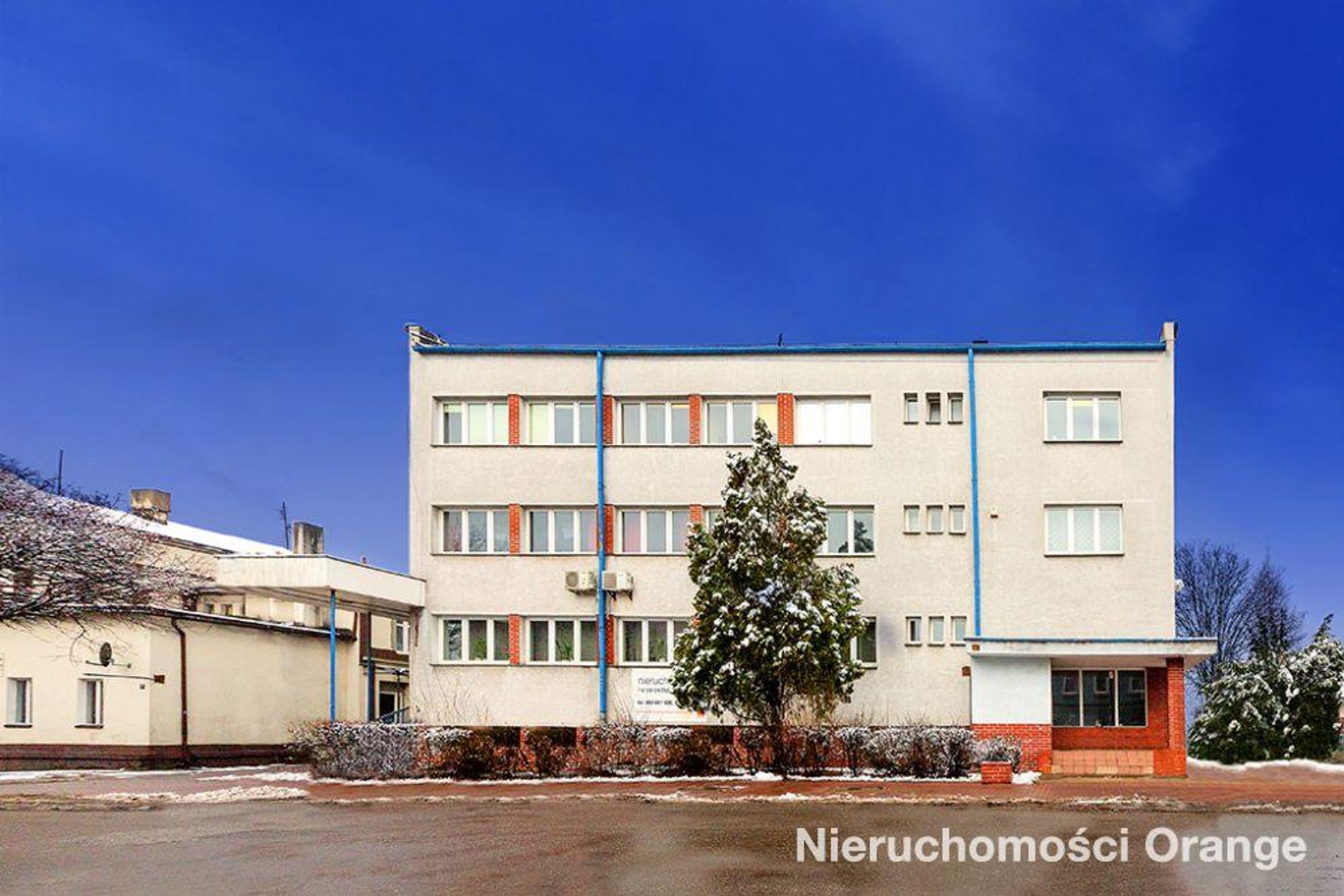 budynek biurowo – technicznny o powierzchni 1302,85 m² - obiekt wolnostojący, trzykondygnacyjny, całkowicie podpiwniczony z dwoma wejściami, jednoklatkowy. Wybudowany w 1975 roku, wykonany w technologii tradycyjnej.