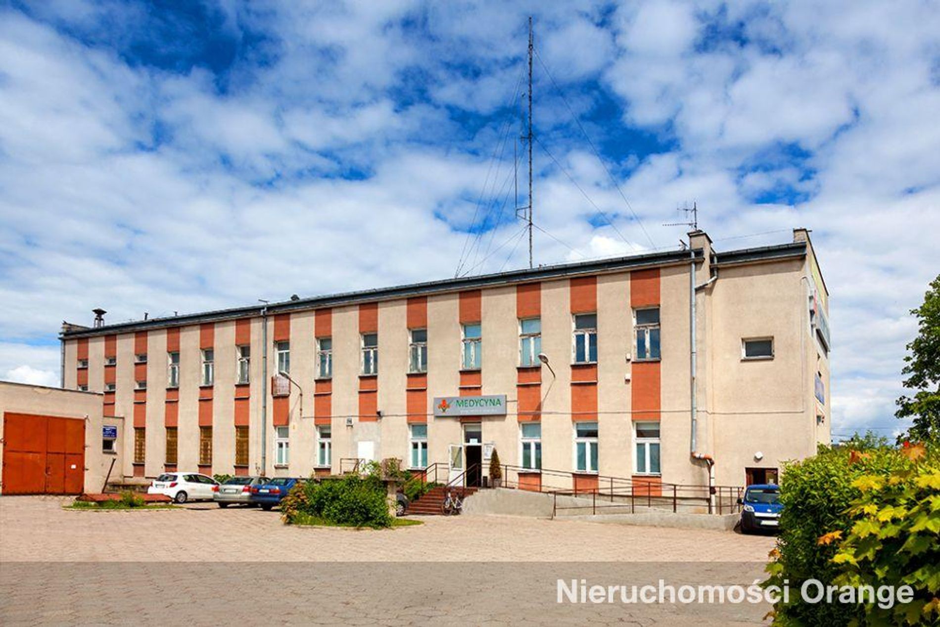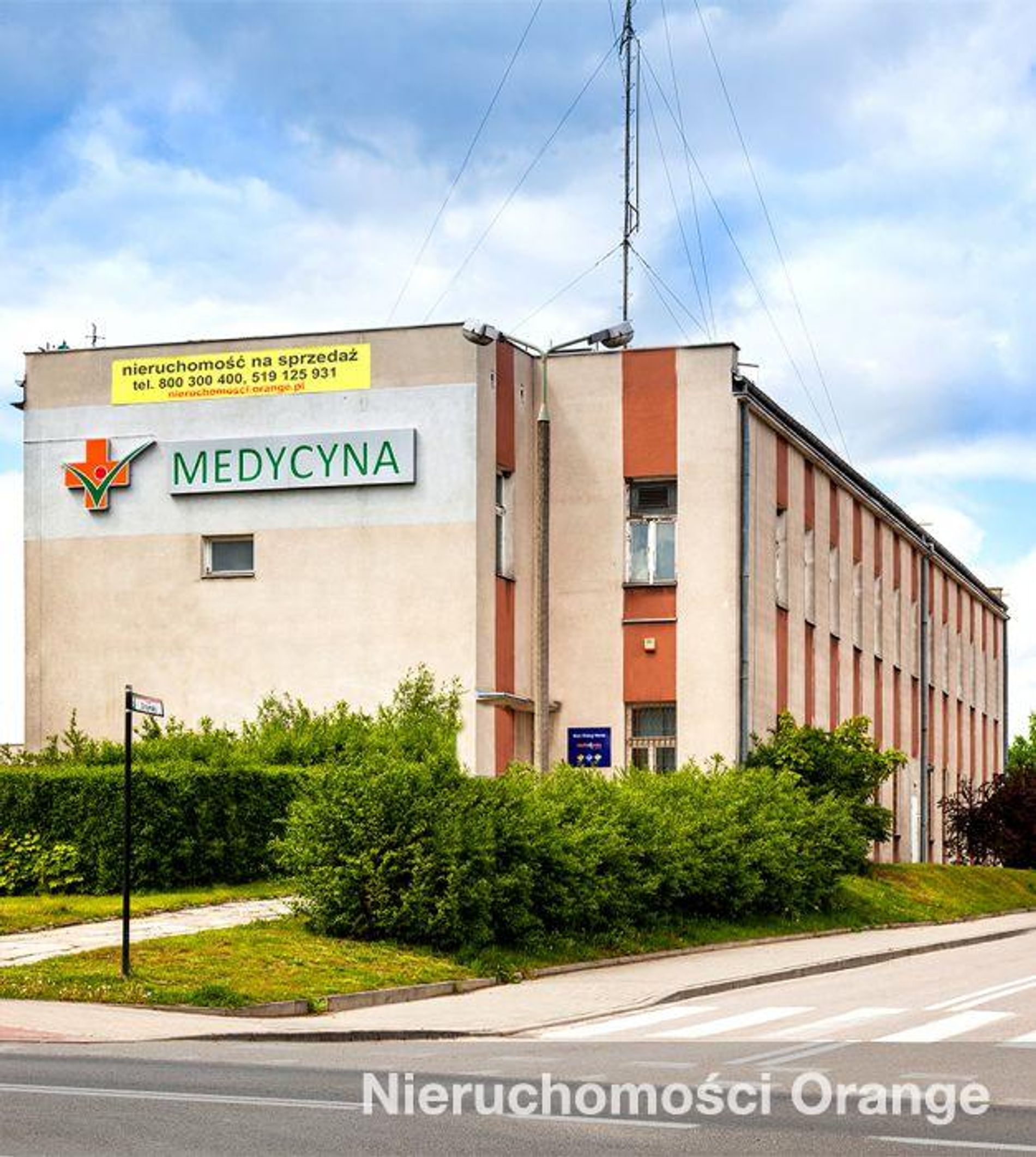 Do sprzedaży jest prawo użytkowania -wieczystego działek o numerach ewidencyjnych: 87/11, 87/12, 88/3, 88/5 i 88/6 o łącznej powierzchni 3997 m² oraz prawo własności do zabudowań posadowionych na działce 87/12:- budynku biurowo-technicznego o powierzchni użytkowej 1818,87 m²- budynku pomocniczego o powierzchni użytkowej 175,01 m²,Na działce nr 87/12 znajduje się także podziemny zbiornik paliwa do agregatu i garaż blaszany. Pozostałe grunty są niezabudowane.Budynek biurowo-techniczny – obiekt dwukondygnacyjny, podpiwniczony, murowany, wykonany w technologii tradycyjnej. Część pomieszczeń budynku jest użytkowana przez Orange Polska, część pomieszczeń jest wynajmowana.Budynek pomocniczy – obiekt połączony łącznikiem z budynkiem biurowo-technicznym, jednokondygnacyjny, niepodpiwniczony, murowany, wykonany w technologii tradycyjnej. W budynku znajdują się pomieszczenia garażowe, rozdzielnia, transformatornia oraz pomieszczenie agregatu.