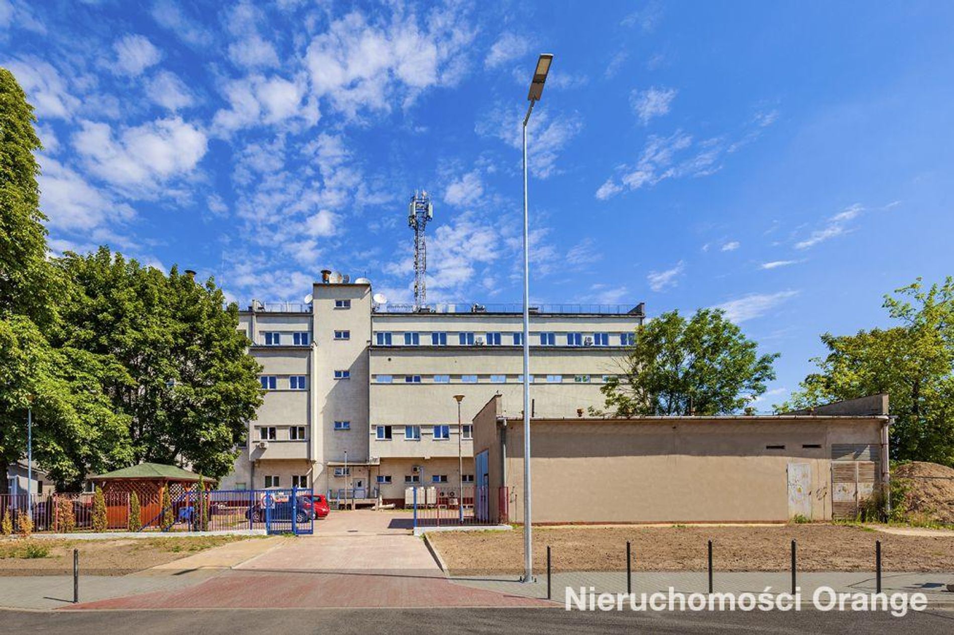 Wjazd na teren nieruchomości możliwy jest od strony południowej przez przesuwną bramę. Dostęp dla pieszych zorganizowany został przez furtki w ogrodzeniu od ulicy Jagiellońskiej oraz przez boczne wejście bezpośrednio z ulicy.