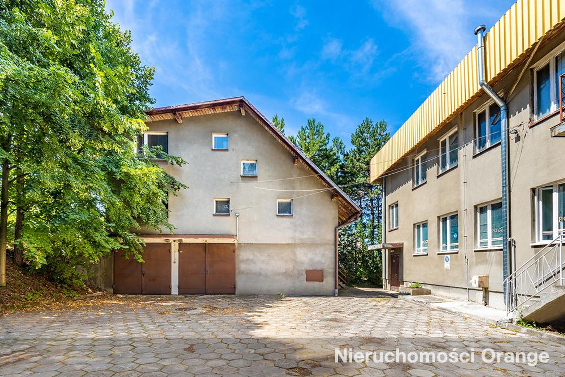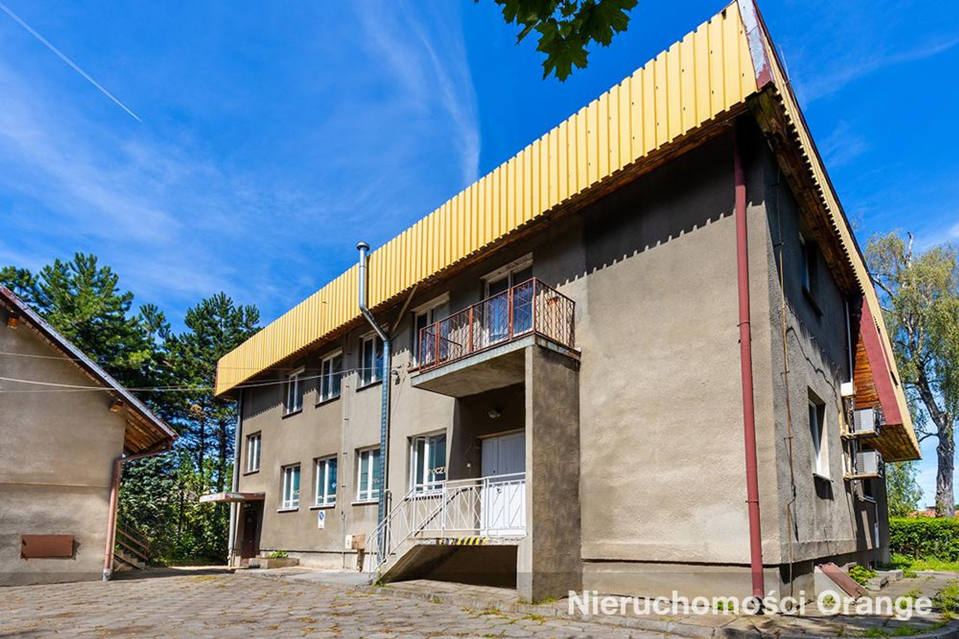 Obiekt biurowo-mieszkalny o 3 kondygnacjach wraz z piwnicą. Wewnątrz budynku mieszczą się różnorodne powierzchnie (m.in. w układzie gabinetowym, większe pokoje), pomieszczenia socjalne, gospodarcze i techniczne. Ponadto w budynku gospodarczym (3-kondygnacyjnym) część pokoi zaaranżowanych na mieszkalne. Na działce utwardzony plac z miejscami postojowymi. Nieruchomość podłączona do sieci wodno-kanalizacyjnej oraz posiada własną kotłownię olejową.