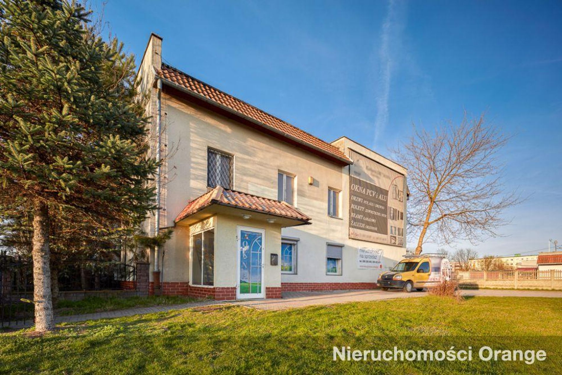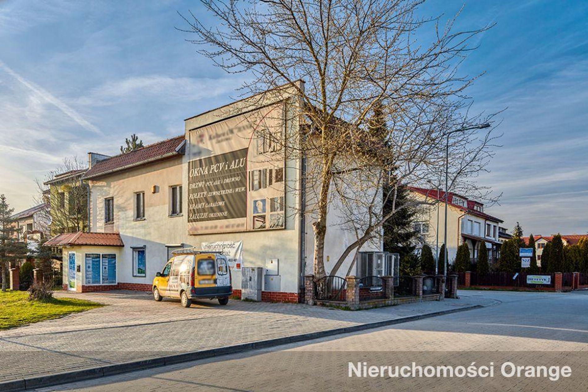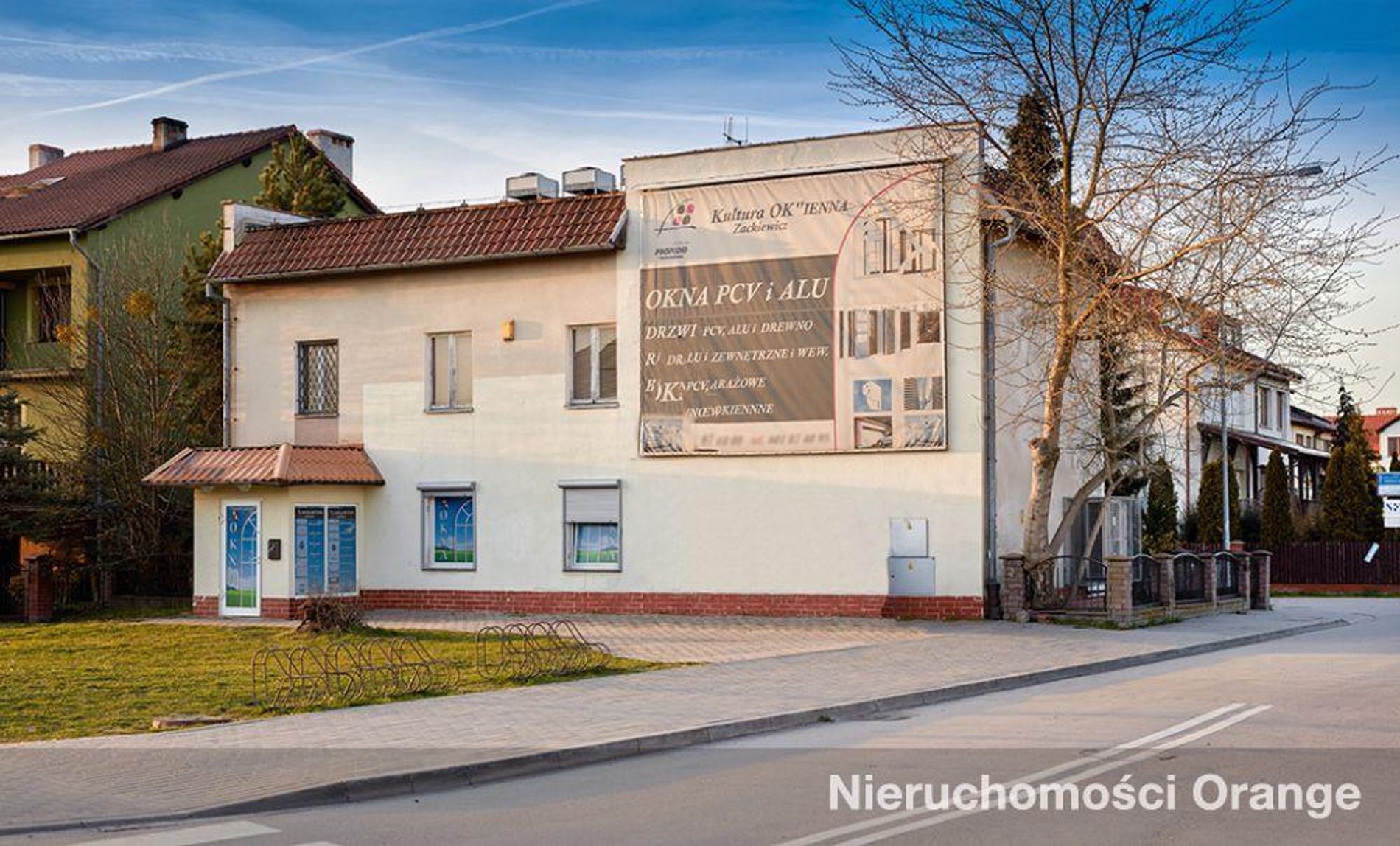 Budynek biurowy w pobliżu stacji kolejowej.