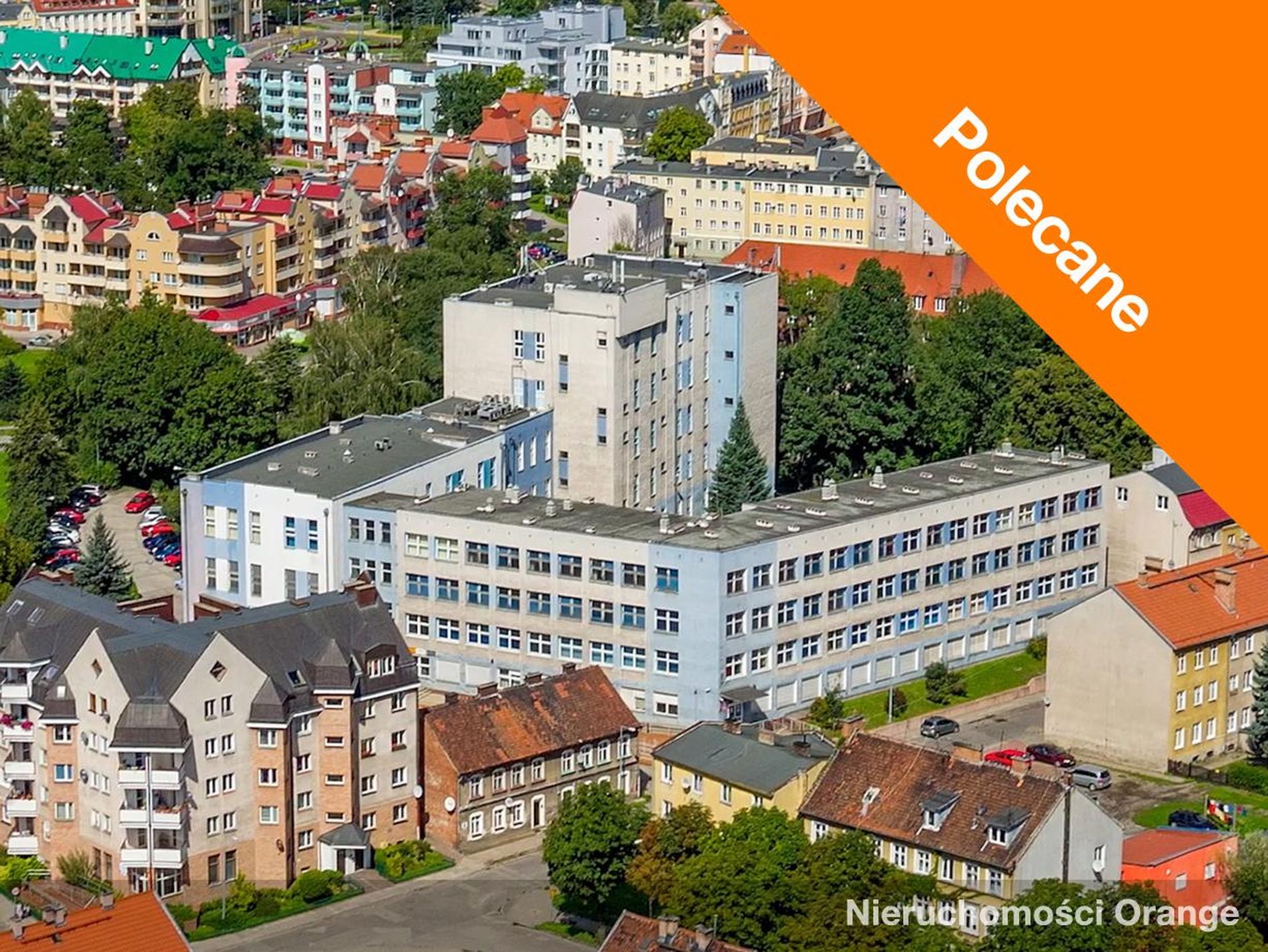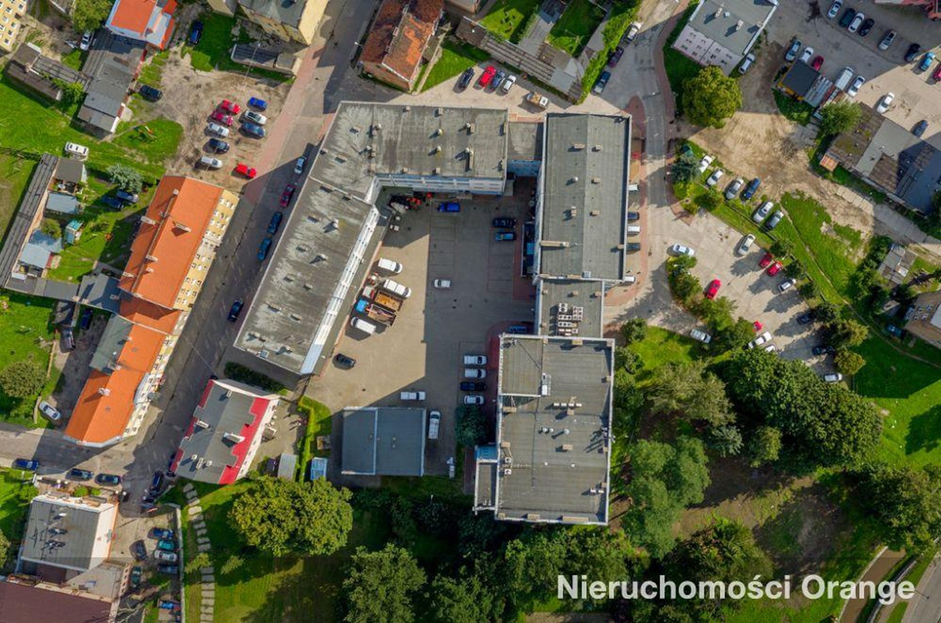 Kompleks budynków z parkingiem: