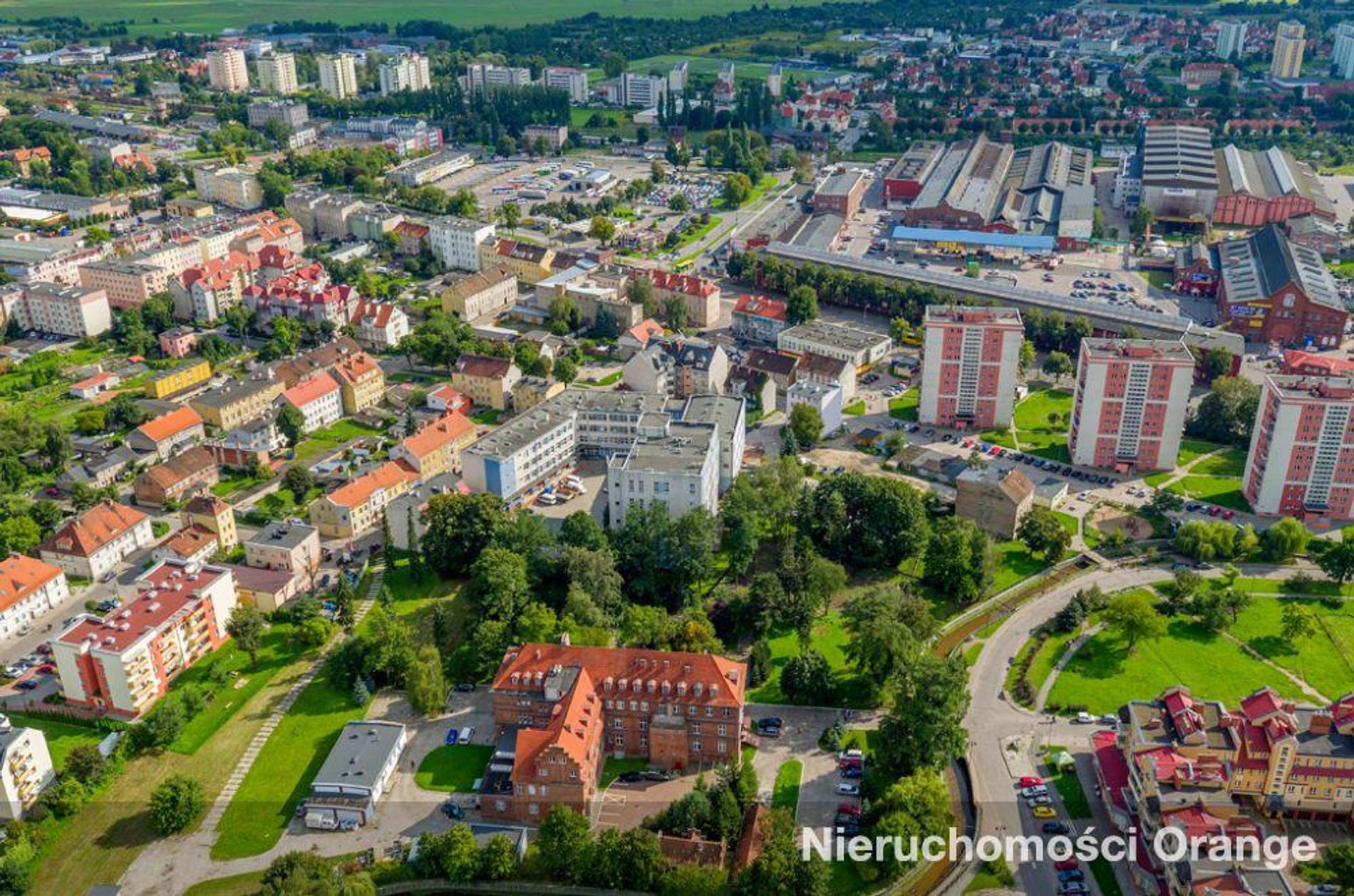 Działki o łącznej powierzchni 7304 m² zabudowane 5 budynkami o łącznej powierzchni użytkowej 9040 m² ,w skład którego wchodzą: