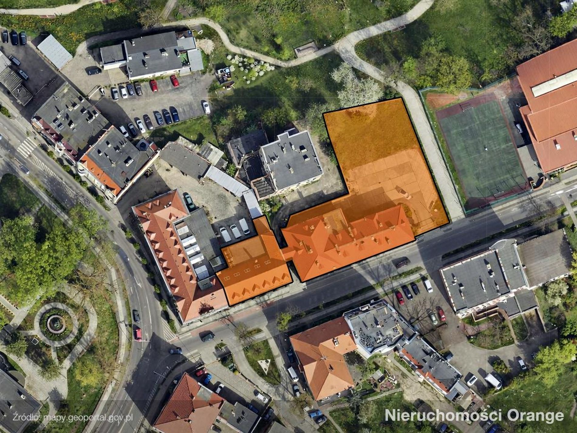 Budynek biurowy - obiekt 3-kondygnacyjny z użytkowym poddaszem, całkowicie podpiwniczony, wykonany w technologii tradycyjnej, murowanej. Dach drewniany kryty dachówką oraz papą. Do budynku bezpośrednio przylega budynek Poczty Polskiej. Budynek zlokalizowany jest na działce nr 313/4.Budynek techniczny – obiekt 3-kondygnacyjny z użytkowym poddaszem, częściowo podpiwniczony, wykonany w technologii tradycyjnej, murowanej z cegły pełnej. Dach drewniany kryty blachodachówką. Budynek zlokalizowany jest na działkach nr 311 i 391.