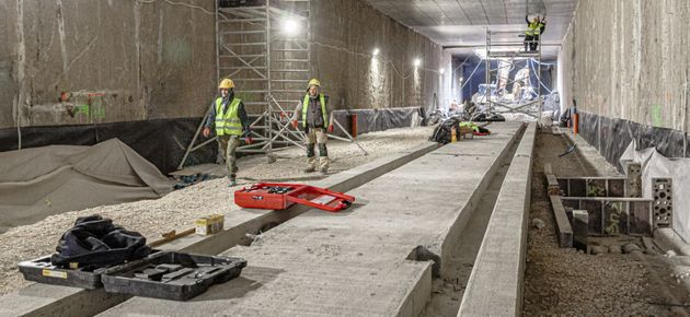 Pierwsze płyty torowe w tunelu